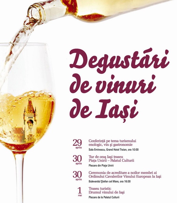 In perioada 29 aprilie-1 mai 2011, va avea loc o manifestare savuroasa pentru ieseni, degustari de vinuri, amestecate cu prezentari si conferinte, evenimentul avand ca scop promovarea si evaluarea vinului din aceasta zona cu traditie viticola.