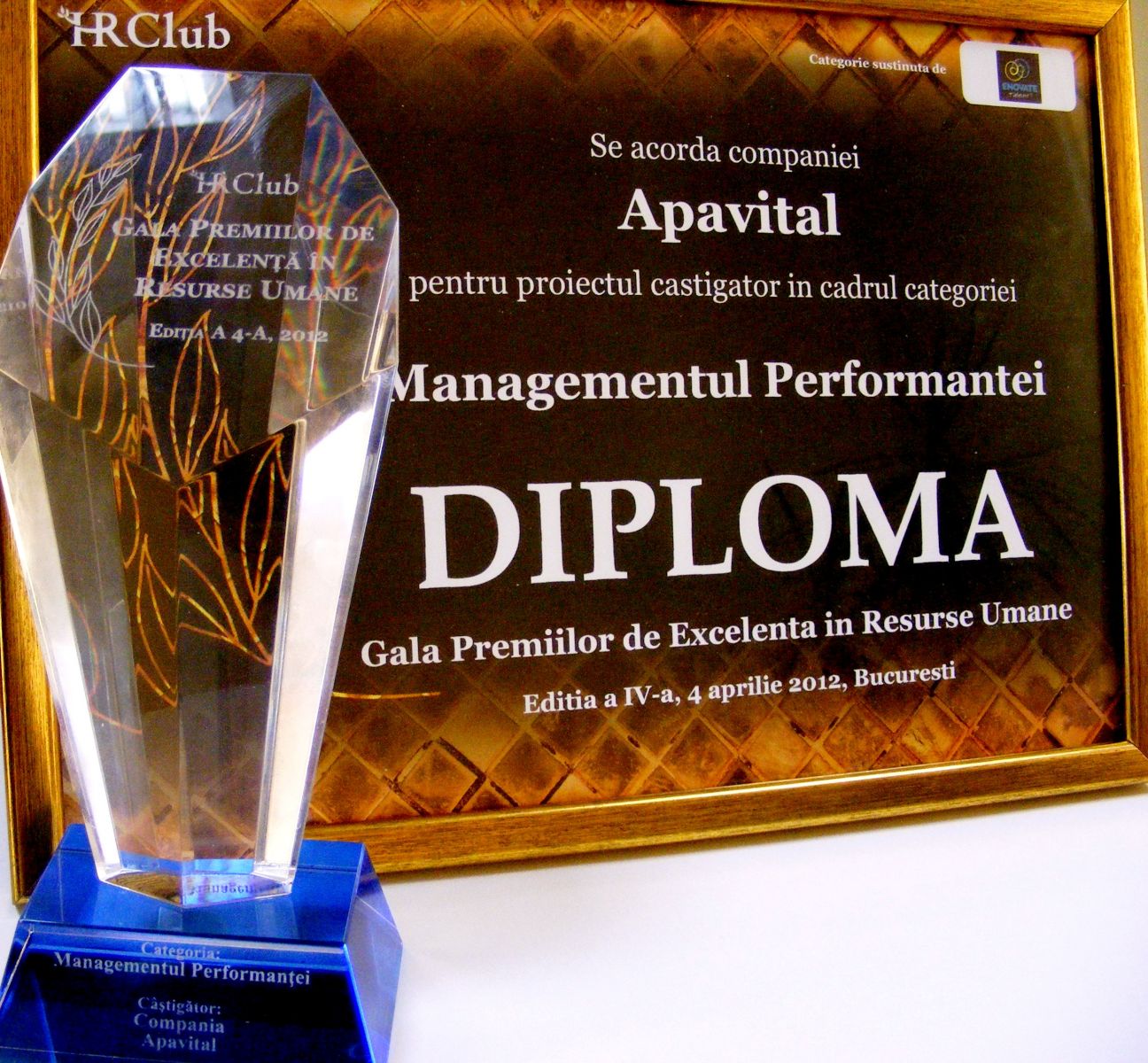 Proiectul ApaVital, declarat castigator la categoria „Cel mai valoros proiect de resurse umane”, sectiunea Managementul Performantei, cu un Proiect de management al performantei ce consta intr-un sistem complex si personalizat de evaluare a performantelor angajatilor, facilitand implementarea managementului prin obiective la nivelul tuturor compartimentelor si posturilor din organizatie. Proiectul are drept finalitate cel mai complet si eficient sistem de evaluare a performantelor aplicat la nivel national in domeniul serviciilor de alimentare cu apa si de canalizare.