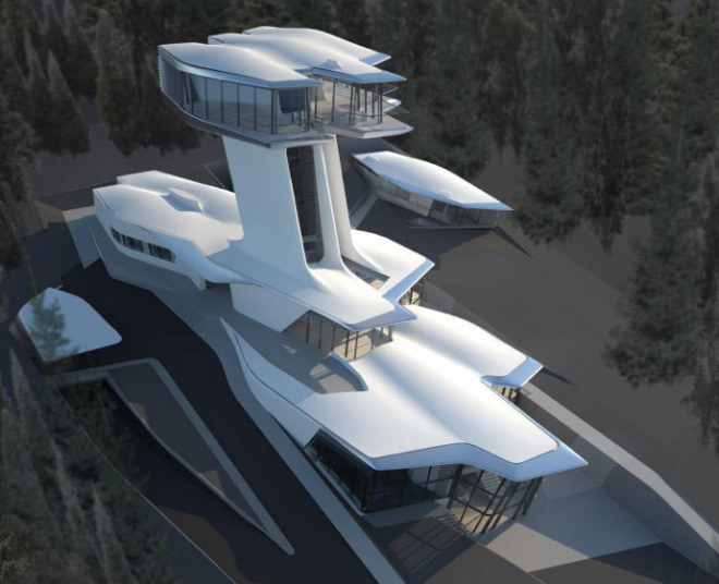 Designul ii apartine lui Zaha Hadid, casa fiind construita pe un deal din Moscova,