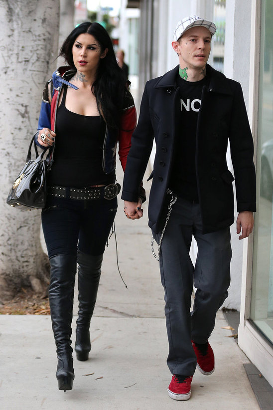 Este vorba despre Kat von D, celebra tattoo artist care detine salonul "L.A Ink" si iubitul