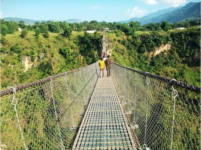 Articol de Cristian AmarieiAcesta este podul Kushma-Gyadi din Parbat, Nepal, construit in anul 2010 deasupra raului Modi, la o inaltime de 117 metri.