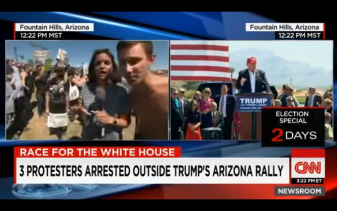 Mitingul lui Trump din orasul Tucson a fost plin de incidente. A inceput cu huiduieli dar